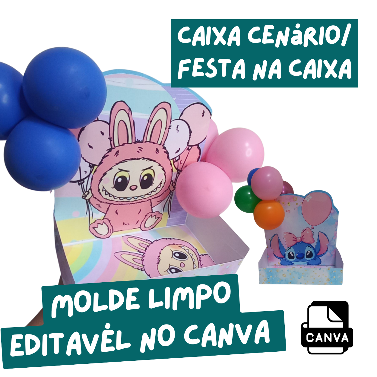 Caixa Cenário/Festa na Caixa Molde Vazio Editável no Canva