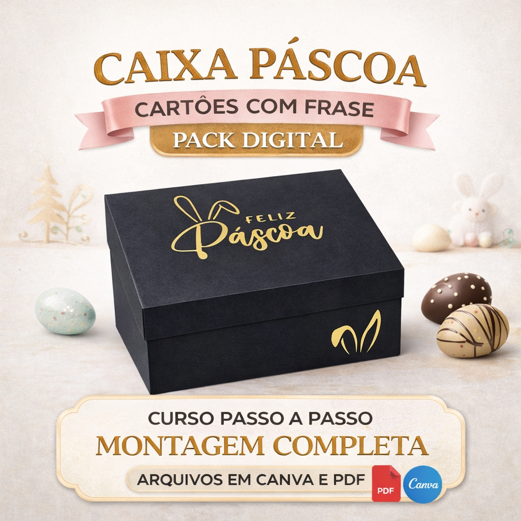 Com este pack digital você terá tudo o que precisa para produzir uma Caixa de Páscoa bonita, profissional e pronta para presentear ou vender.