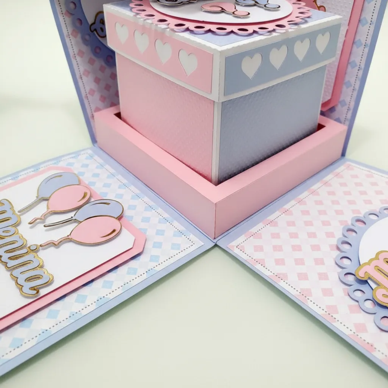 Arquivo de corte Caixa Explosão Chá Revelação, nos formatos Silhouette Studio e PDF.