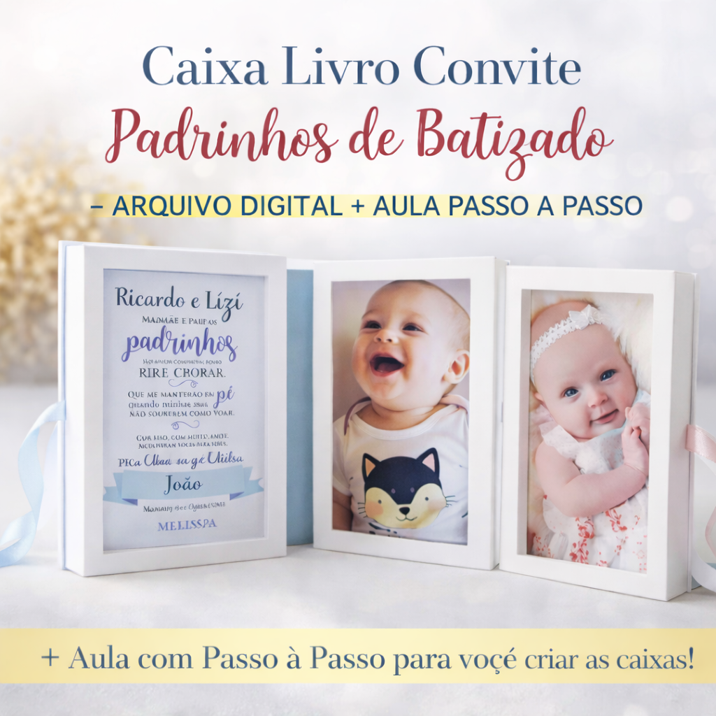Caixa Livro Convite Padrinhos de Batizado – Arquivo Digital + Aula Passo á Passo