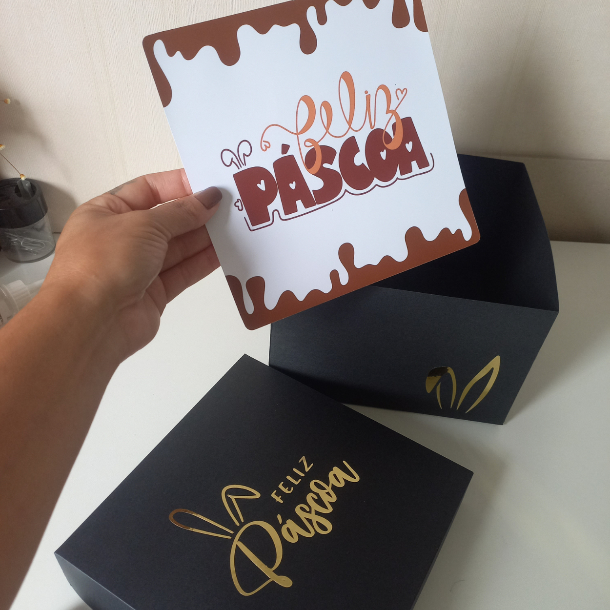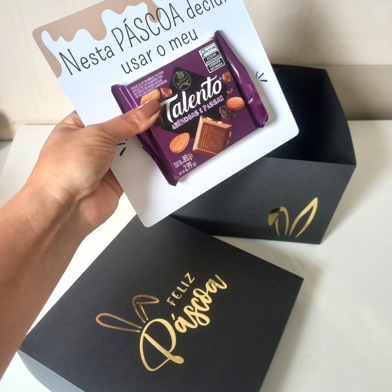 Com este arquivo você poderá produzir cartões personalizados para chocolates de maneira prática, criando presentes criativos e lembranças especiais para a Páscoa.