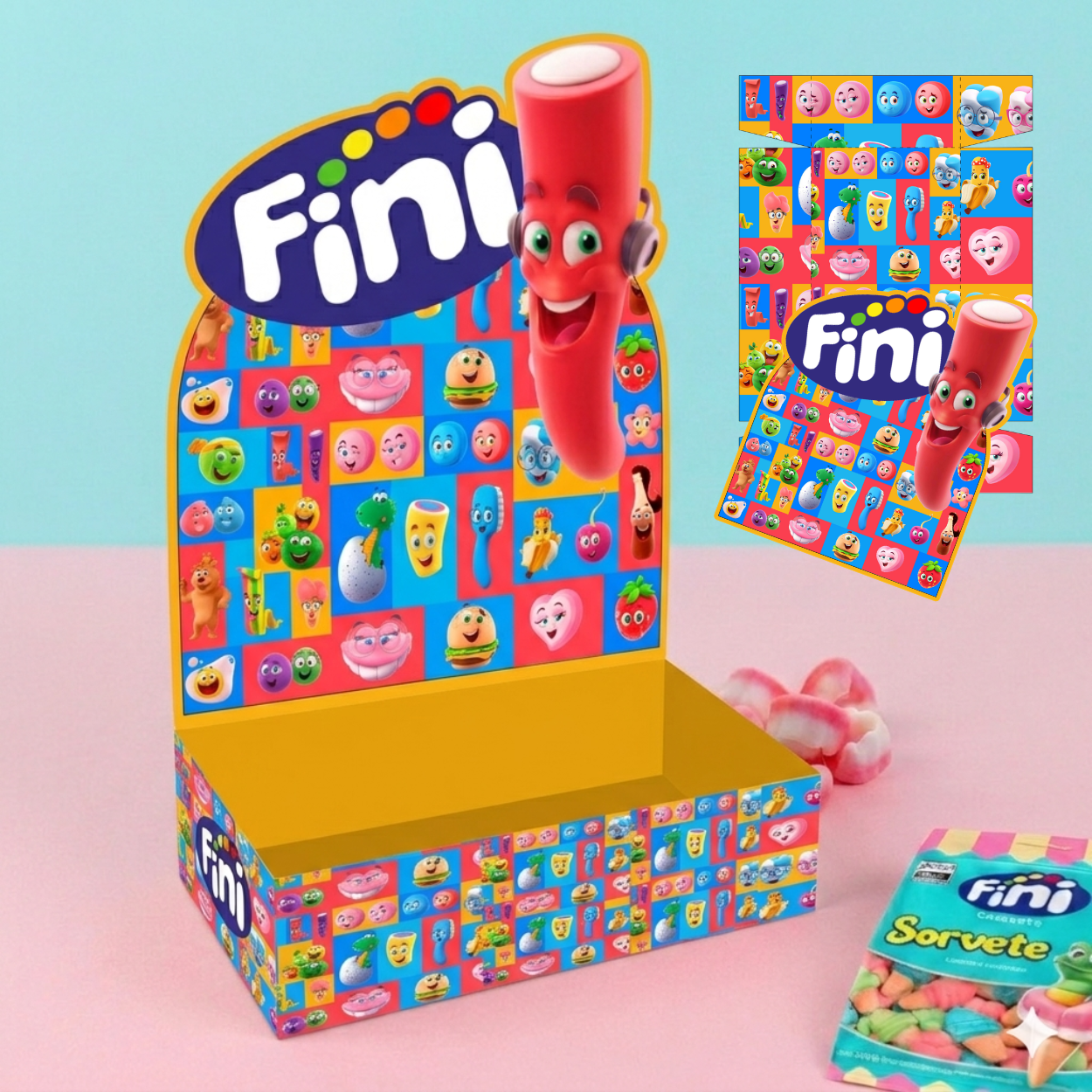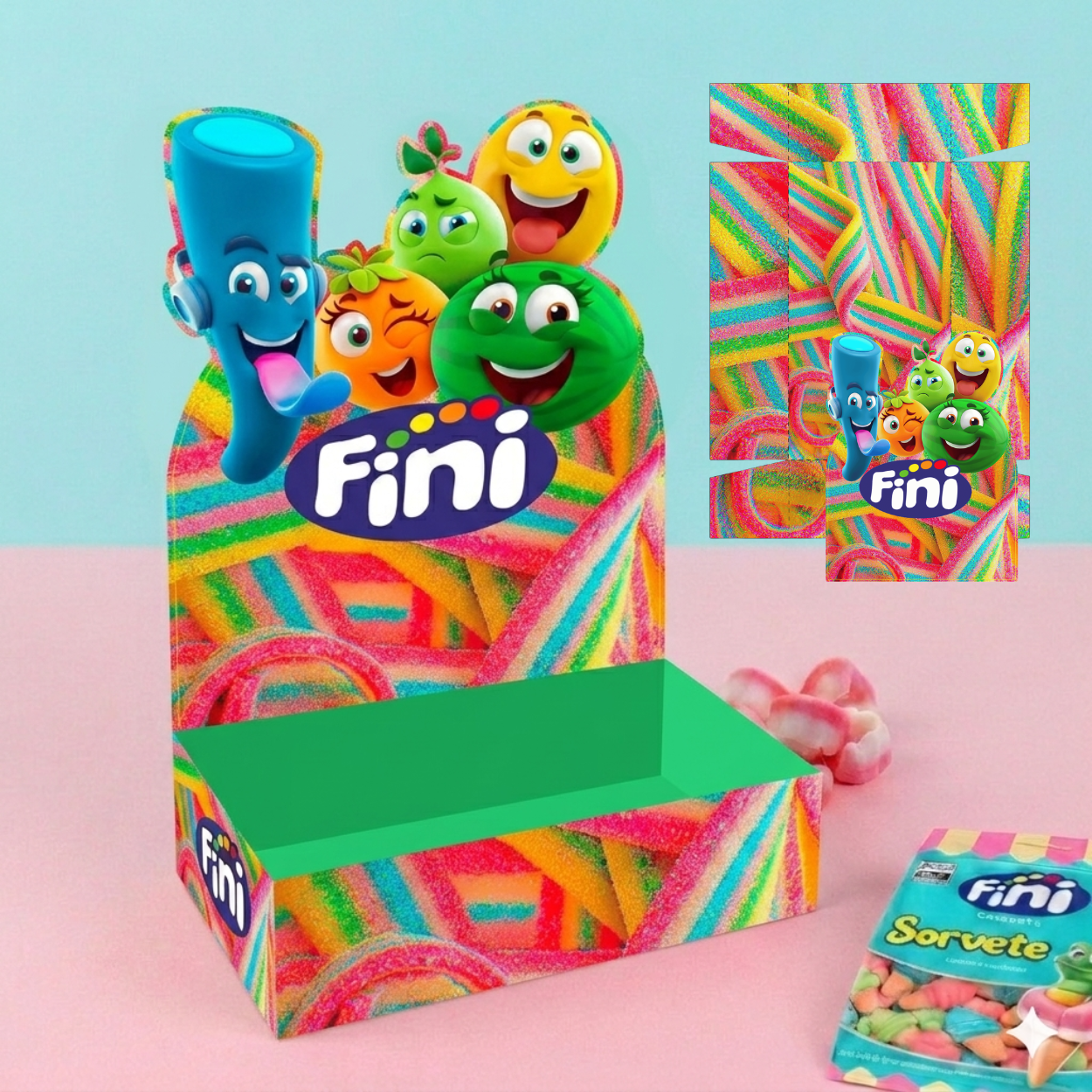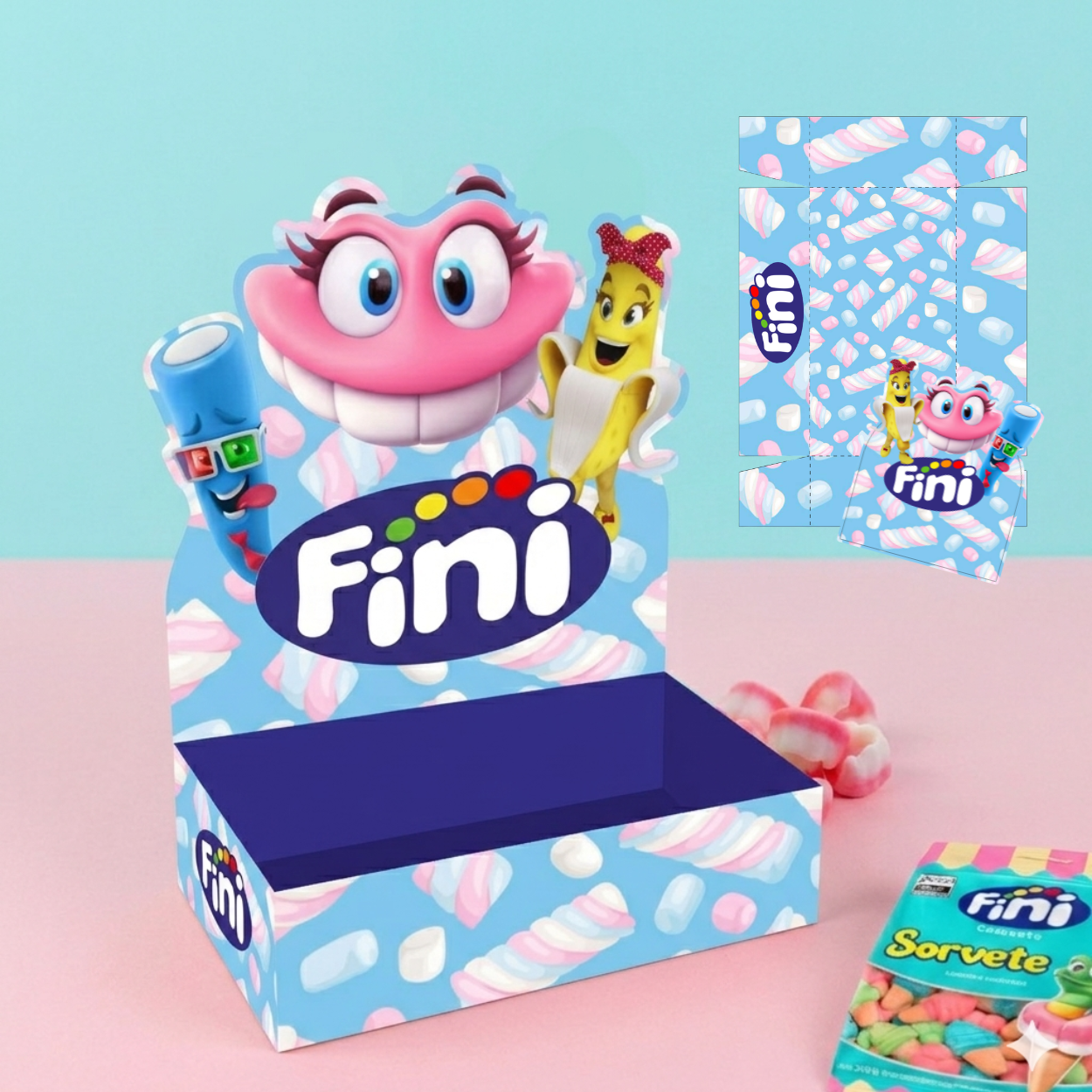 Arquivo digital com 12 modelos exclusivos de caixa temática Fini, ideal para montar kits de doces, lembrancinhas, presentes personalizados ou para venda.