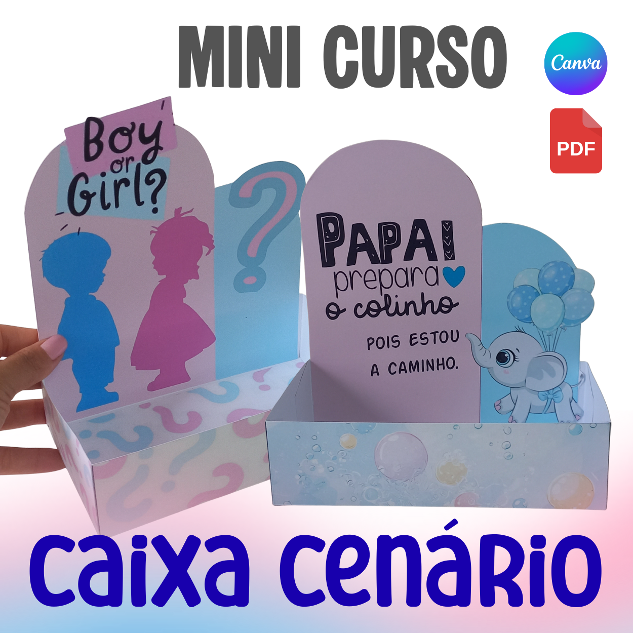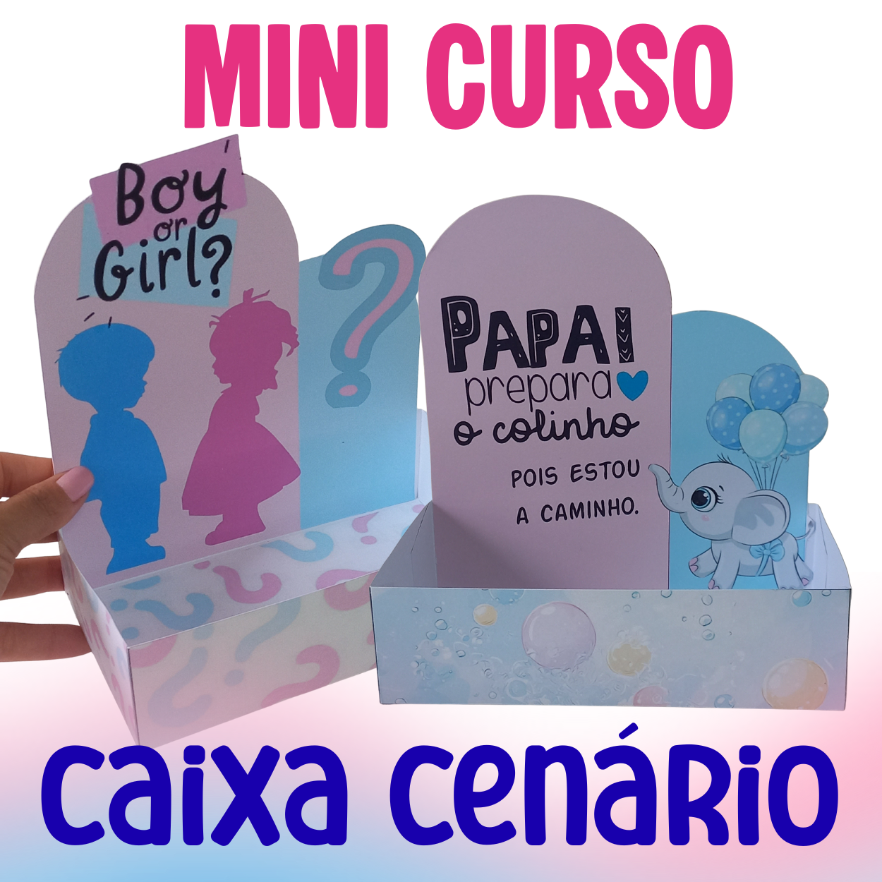 Mini Curso com Arquivos – Caixa Cenário para Chá Revelação e Anúncio de Gravidez