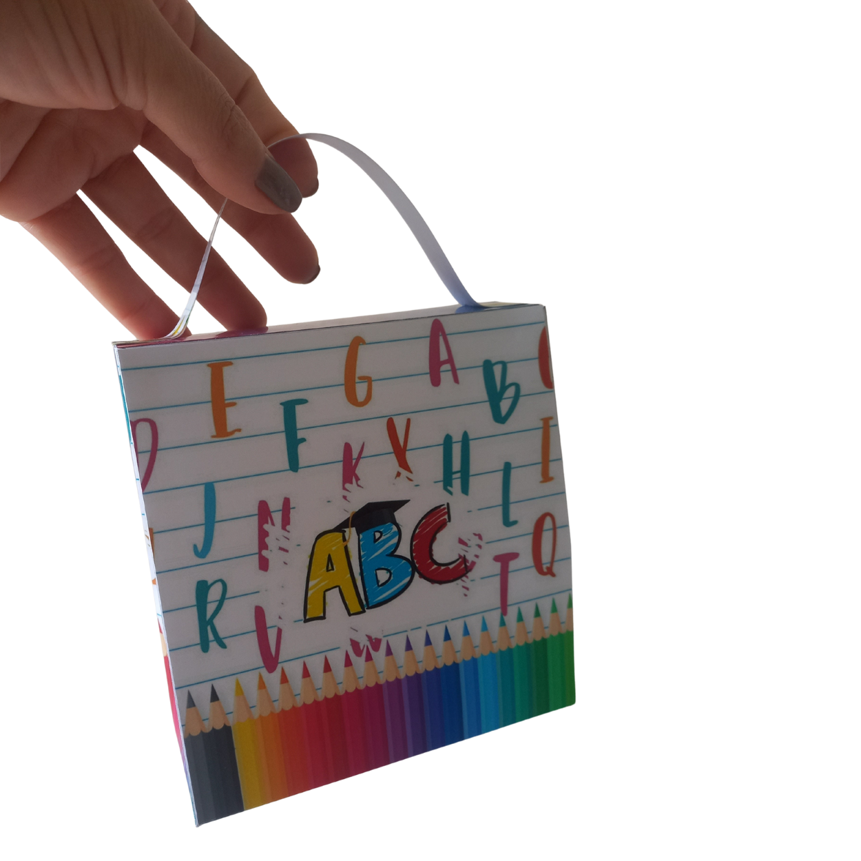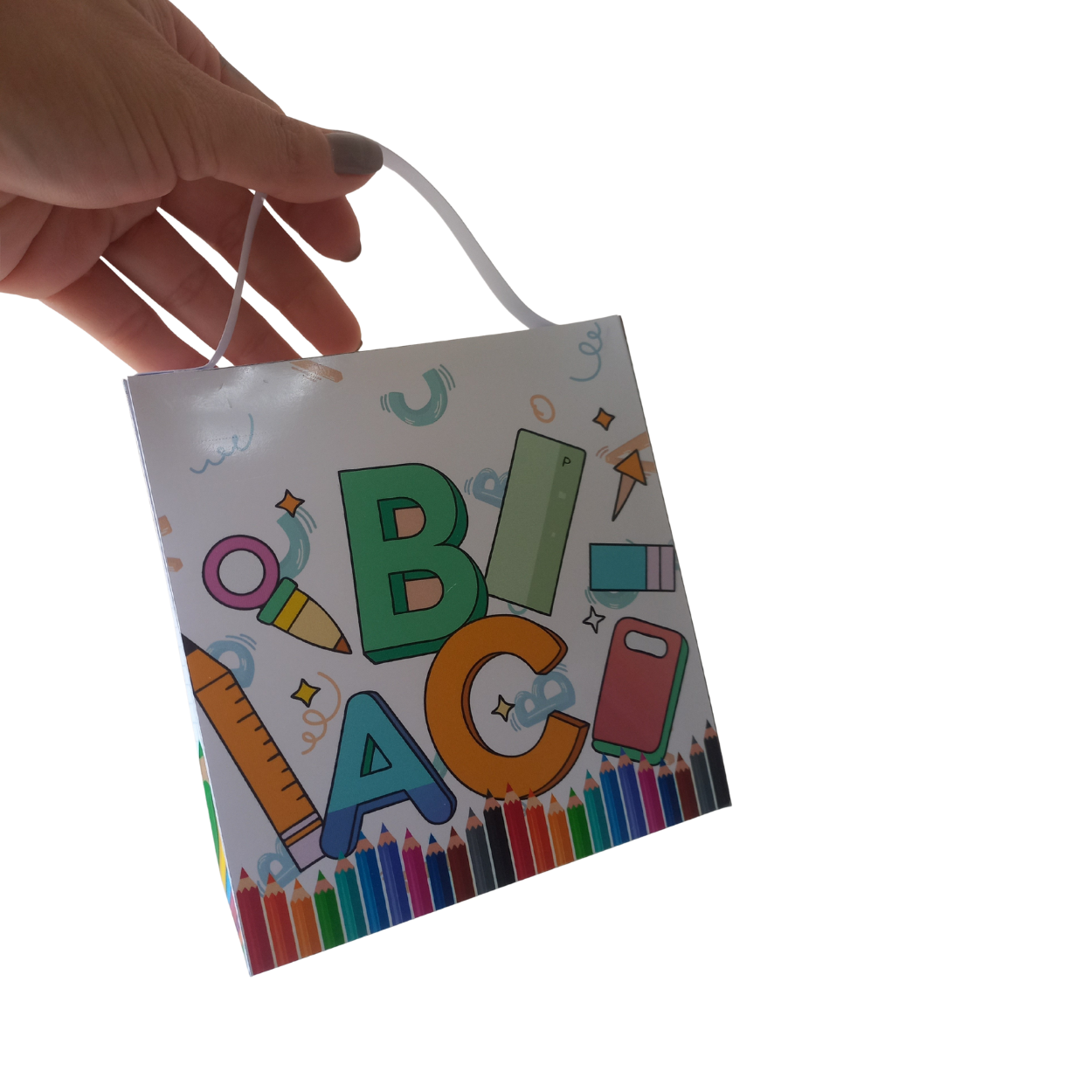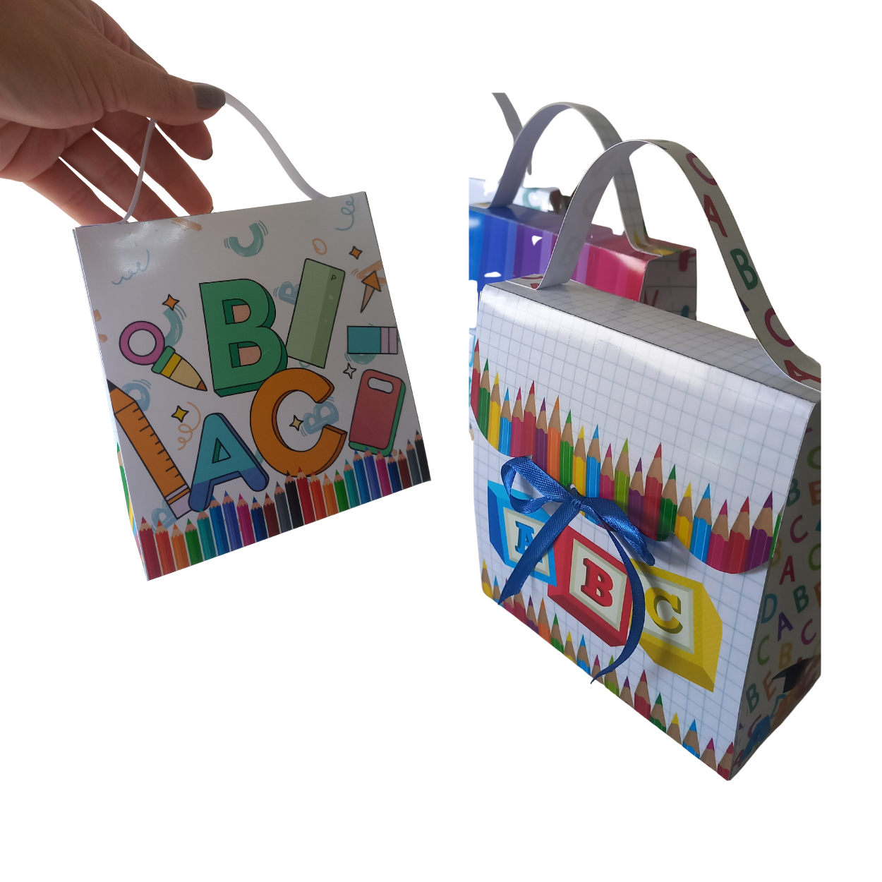 Este pack exclusivo traz 10 modelos prontos de sacolas e maletas TEMA FORMATURA ABC tamanho P (14x13x6cm) — perfeitas para lembrancinhas, presentes e produtos personalizados.